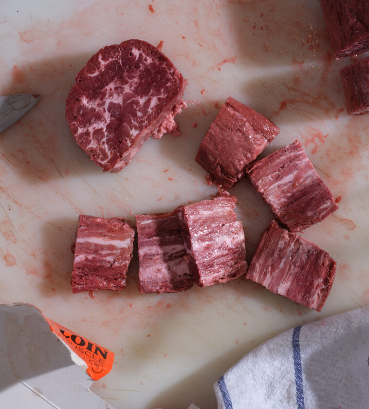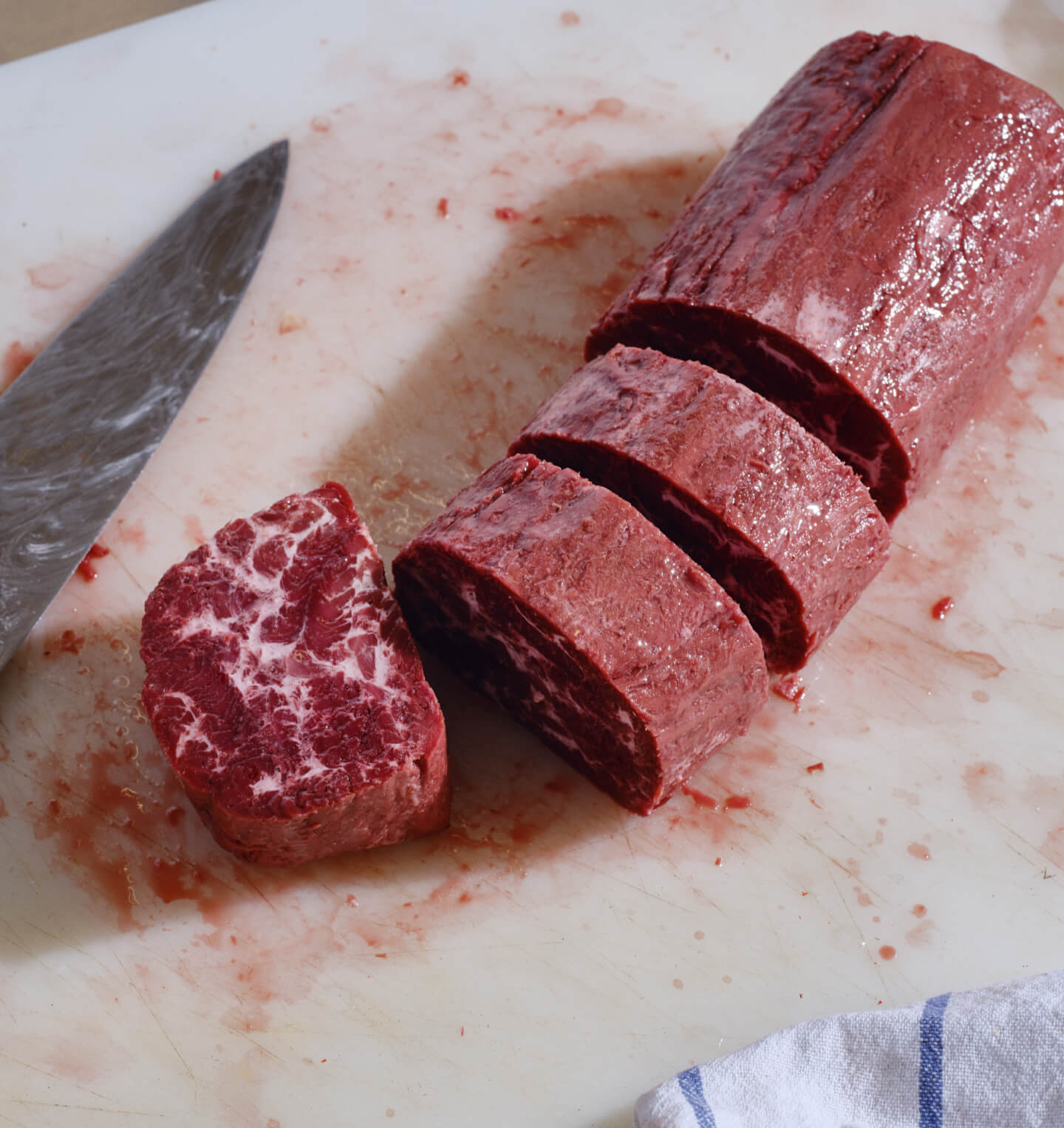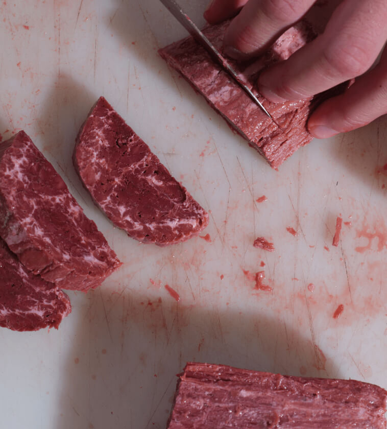 This is a cut of an original Marbles’ Loin. It can be anything you want it to be: flanks, chunks, shreds, or strips. Briskets, stir fry, or sandwiches. Get as freaky as you like.